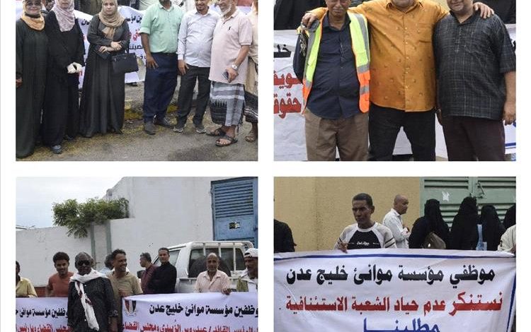 عمال وموظفو ميناء عدن ينفذون وقفة احتجاجية أمام محكمة الاستئناف بصيرة للمطالبة بحقوقهم في الأراضي التعويضية