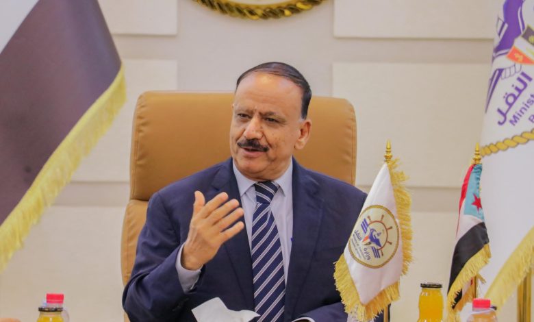 وزير النقل يعلن بأسم الوزارة والهيئات والمؤسسات والشركات التابعة لها تأييد كافة القرارات والخطوات التي اتخذها الرئيس القائد المناضل عيدروس بن قاسم الزبيدي