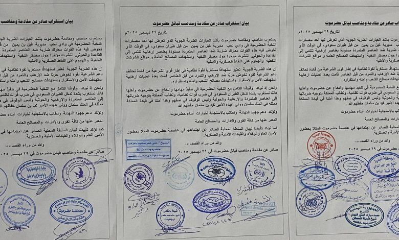 صادر عن مقادمة ومناصب قبائل حضرموت في 29 ديسمبر 2025