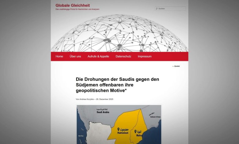 زعم تحليل سياسي نشره موقع المساواة العالمية (Global Gleichheit) إن التحركات والتهديدات السعودية الأخيرة تجاه المجلس الانتقالي الجنوبي تكشف عن دوافع جيوسياسية أعمق، تتمثل في سعي الرياض للحصول على كيان تابع لها في جزء من اليمن، «كمكافأة على قتالها ضد الحوثيين».