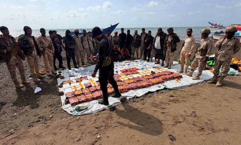 الحملة الأمنية لقوات العمالقة الجنوبية تضبط ربع طن من المخدرات على متن قارب في باب المندب