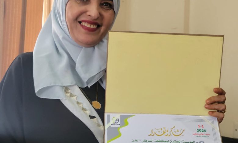 المؤسسة الوطنية لمكافحة السرطان تكرم مديره الصحة المدرسية بالعاصمة عدن