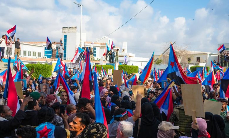 تظاهر عشرات الالاف من أبناء الجنوب ، صباح الأحد، في مديرية التواهي بمحافظة عدن، احتجاجًا على قرارات تقضي بإغلاق مقر الجمعية العمومية التابعة للمجلس الانتقالي الجنوبي، في خطوة تصعيدية اثارة استنكارا شعبيا بين اوساط الجماهير والنخب السياسية والاجتماعية..