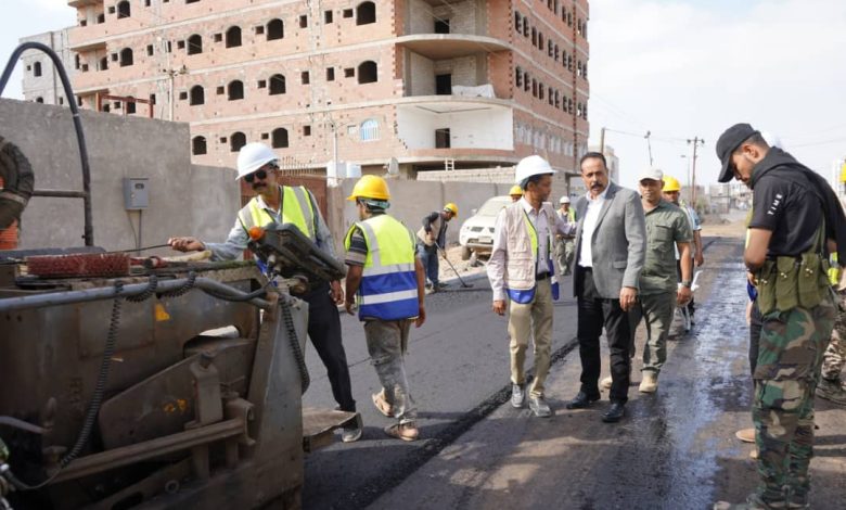 وزير الأشغال يدشن انطلاق أعمال إسفلت طريق التقنية إنماء في المنصورة بعدن
