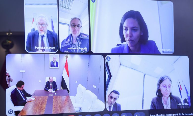 وتناول الاجتماع المنعقد عبر الاتصال المرئي، بمشاركة سفراء فرنسا، والمانيا، وهولندا، ما يمكن ان يقدمه الاتحاد والدول الأوروبية من دعم لجهود الحكومة في تنفيذ مشروع برنامجها للعام 2026م، وأولويات التعاون في القطاعات الحيوية لتخفيف معاناة المواطنين، إضافة الى تقليل التداعيات المحتملة على اليمن جراء التطورات في المنطقة.