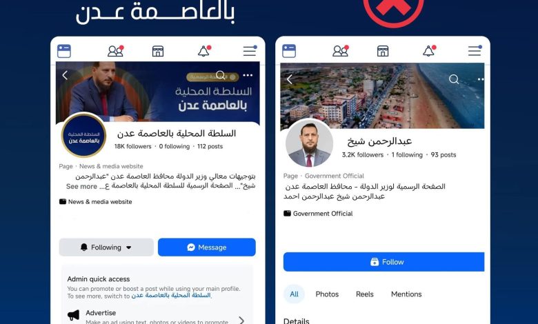 بناءً على التعميم الصادر عن وكيل العاصمة عدن لقطاع الإعلام، الأستاذ محمد سعيد سالم، في 8 يناير 2026م، نؤكد أن المصدر الرسمي والوحيد المعتمد لتمثيل السلطة المحلية على منصات التواصل الاجتماعي هو الحساب التالي على منصة فيسبوك: السلطة المحلية بالعاصمة عدن (@AdenGov).
