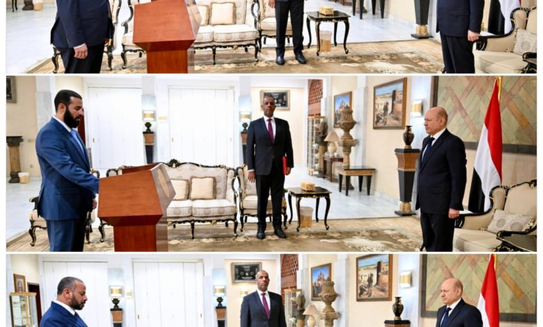 محافظو محافظات لحج وابين والضالع يؤدون اليمين الدستورية امام رئيس مجلس القيادة الرئاسي