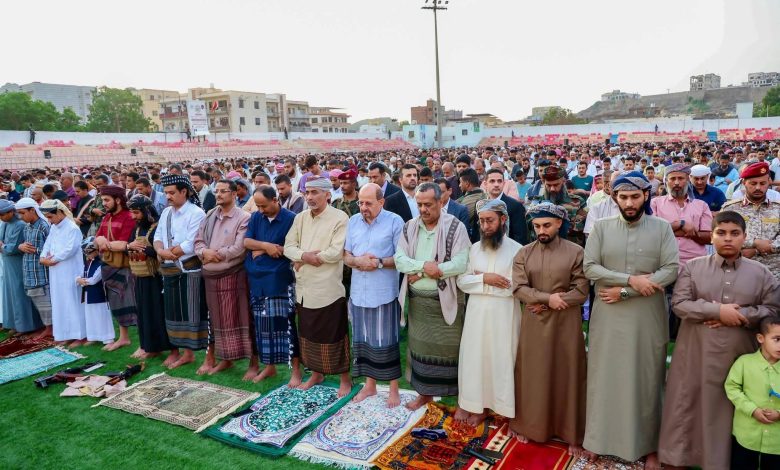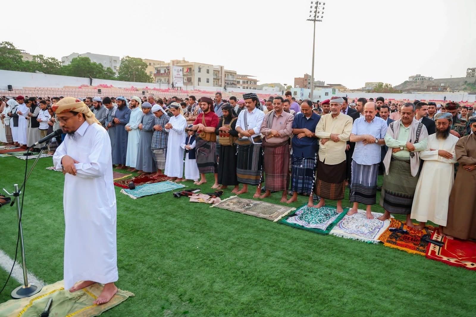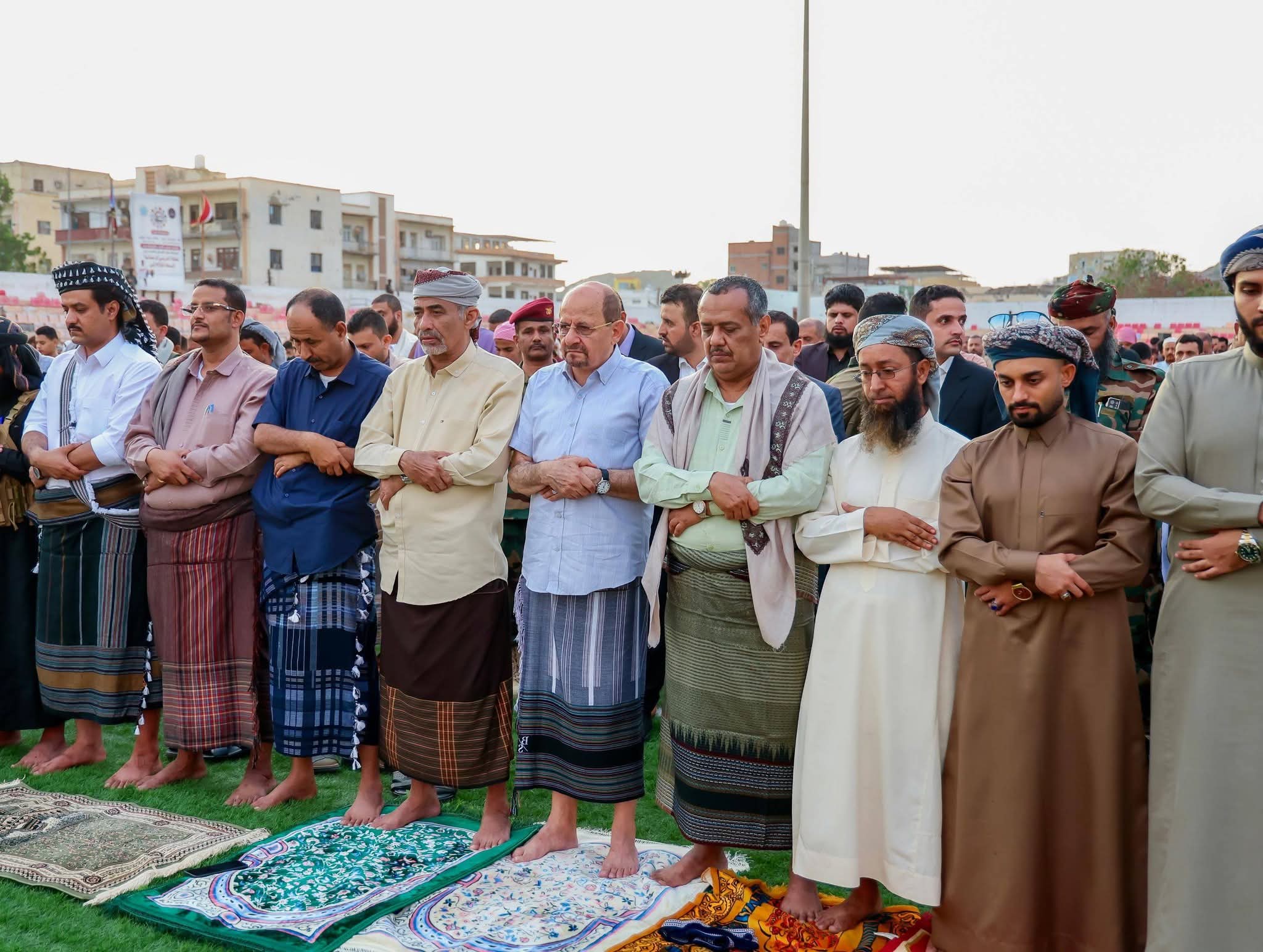 أدى عضو مجلس القيادة الرئاسي، الفريق الركن محمود سالم الصبيحي، ورئيس مجلس الوزراء وزير الخارجية وشؤون المغتربين، الدكتور شائع محسن الزنداني، وعدد من المسؤولين والقيادات العسكرية والأمنية صلاة عيد الفطر المبارك مع جموع المصلين، في ملعب الحبيشي بمديرية كريتر بالعاصمة المؤقتة عدن.