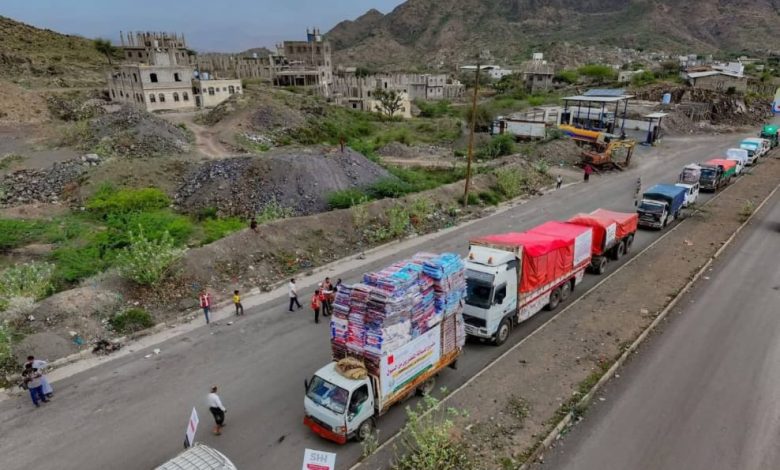 تعز : مؤسسة الشيخ حمود سعيد المخلافي تشارك في تسيير قافلة إغاثية وإيوائية طارئة للمتضررين بالمديريات الساحلية
