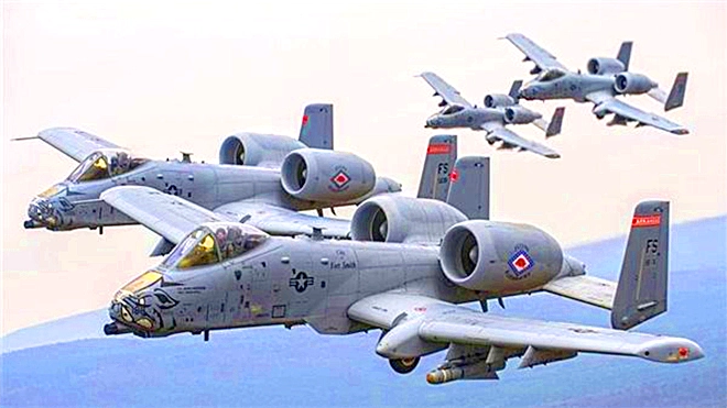 صُممت طائرة الهجوم A-10 Thunderbolt II لتوفير الدعم الناري للقوات البرية ومهاجمة الطائرات المسيّرة الضاربة. ولتحقيق هذه الأهداف، زُوّدت بصواريخ APKWS II وSidewinder الموجهة بالليزر، بالإضافة إلى مدفع دوار سباعي المواسير عيار 30 ملم.