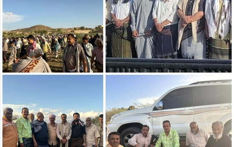 جموع غفيرة تقدمهم شخصيات وقيادات رفيعة يشاركون سامي السعيدي وأخوانه في تشييع والدته بمسقط رأسها بمكرارة دثينة بأبين
