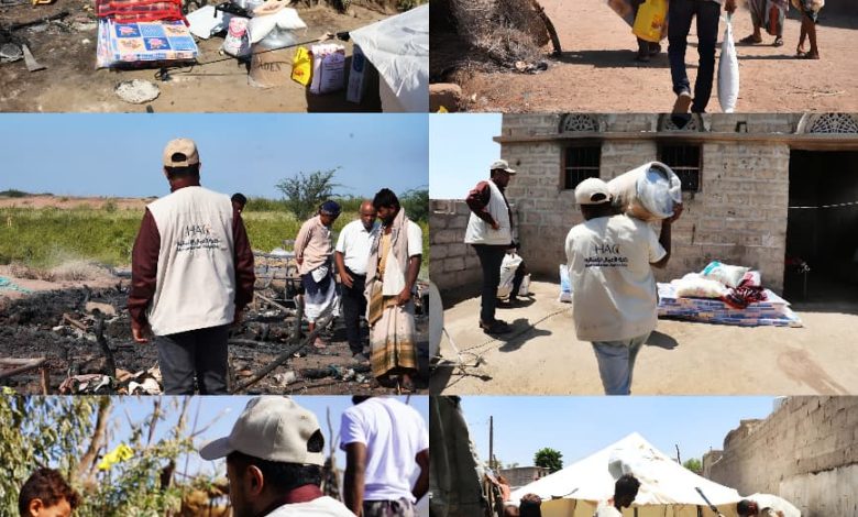الحديدة.. خلية الأعمال الإنسانية تغيث أسرًا متضررة من احتراق منازلها في الخوخة