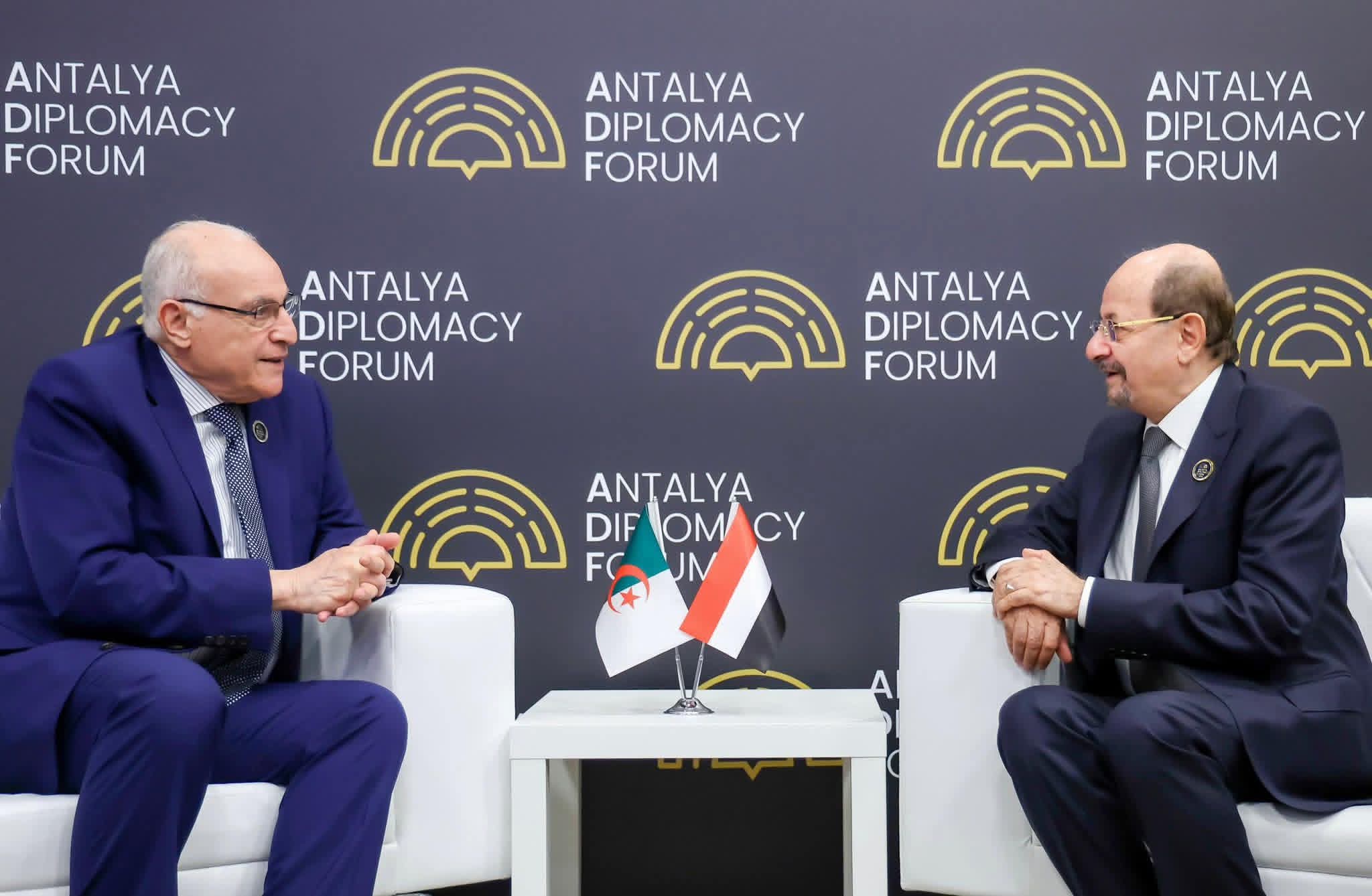التقى دولة رئيس مجلس الوزراء وزير الخارجية وشؤون المغتربين الدكتور شائع محسن الزنداني اليوم على هامش الدورة الخامسة لمنتدى أنطاليا الدبلوماسي، وزير الشؤون الخارجية والجالية الوطنية بالخارج بالجمهورية الجزائرية الديمقراطية الشعبية أحمد عطاف.