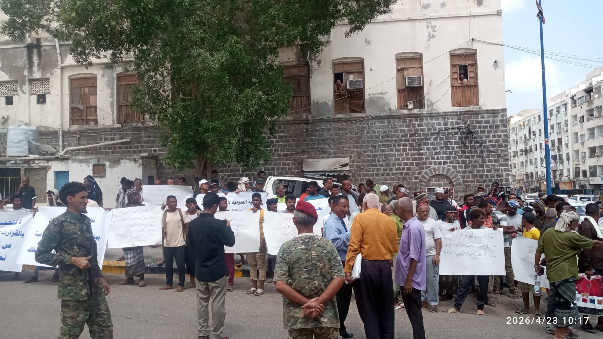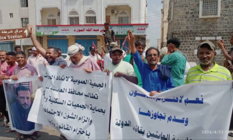 شهدت محافظة عدن، صباح الخميس، وقفة احتجاجية نظمتها اللجنة التحضيرية للاتحاد العام للجمعيات التعاونية السكنية أمام مبنى المحافظة، للمطالبة بإقالة مدير عام مكتب الشؤون الاجتماعية والعمل، على خلفية ما وصفته بتجاوزات قانونية وتدخلات غير مشروعة في شؤون الاتحاد.