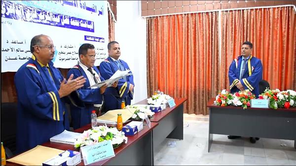 وتكونت لجنة المناقشة والحُكم من أستاذ مشارك دكتور/ صلاح عمر بالخير رئيساً ومناقشاً خارجياً من جامعة حضرموت , وأستاذ مساعد دكتور/ عيسى سالم الأحمدي عضواً و مناقشاً داخلياً من جامعة عدن, وأستاذ مشارك دكتور/ علي ناصر الزامكي عضواً ومشرفاً علمياً من جامعة عدن.