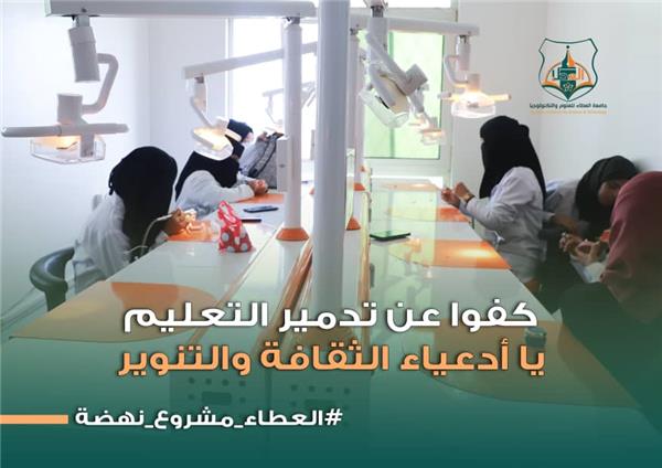 وأكد المجلس الطلابي ،بحسب البيان، رفضه القاطع لحملات التشويه والتحريض والتنمر على المؤسسات التعليمية، كافة، لما لذلك من انعكاسات سلبية على مستقبل الأجيال والوطن، وكذا حملة التشويه الممنهجة والمعدة سلفا للنيل من جامعة العطاء -الصرح التعليمي الرائد- والطلاب فيها الذين طالتهم هذه الحملة غير المسؤولة.