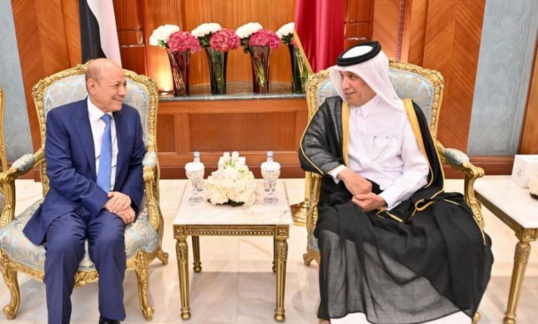 واشاد رئيس مجلس القيادة الرئاسي بالنهضة الكبيرة التي تشهدها دولة قطر الشقيقة بقيادة اخيه صاحب السمو الشيخ تميم بن حمد آل ثاني، بما في ذلك النجاح القياسي للاستعدادت والتجهيزات الجارية لاستضافة كأس العالم 2022، كأهم حدث رياضي عالمي تستضيفه المنطقة للمرة الاولى.