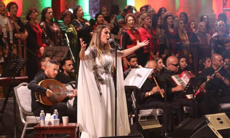 خيل الخليل وطلّتها، ورام الله التحتا والفوكا، وبرج يافا واسمها العالي، وحيفا العربية الرمّانة الساحلية، وسوق الترويحة النابلسي وخان نابلس وغندورتها، والطالعين في جنين عالجبل ليكيدوا الأعادي، وبياع التفاح الناصريّ (إسّا إجا وإسّا راح)، واللي رايحين على صفد، وحبايب بيت لحم، وطبريا ونسوانها ورجالها، وبديوية النقب، وسور عكا، وشعب الجبّارين الذي في غزّة، وطلّة خيلنا من القدس، وروح الشعب كل الشعب كانت حاضرة في مسرحٍ نابتٍ من عبق التاريخ ليعيد لأرض مغتصبة تاريخ أهلها وغنائها وأفراحها وندائها الأزليّ من أجل الحرية والكرامة والنصر والتحرير.