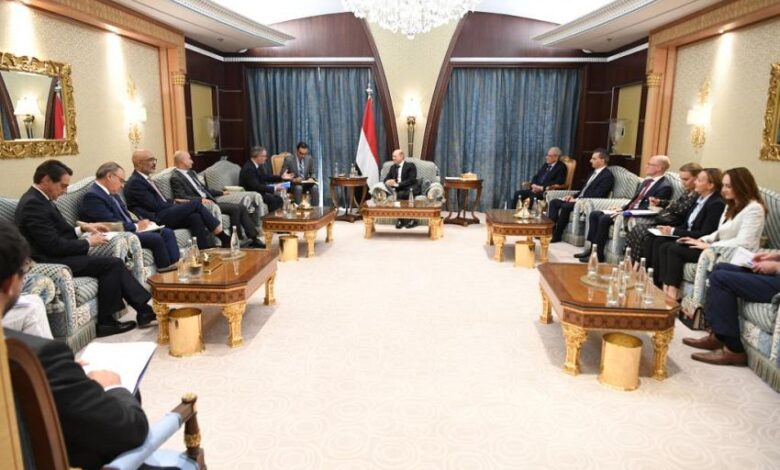 ورحب رئيس مجلس القيادة الرئاسي بالسفراء الاوروبيين..مشيداً بموقف بلدانهم الموحد الى جانب الشعب اليمني وقيادته السياسية.
