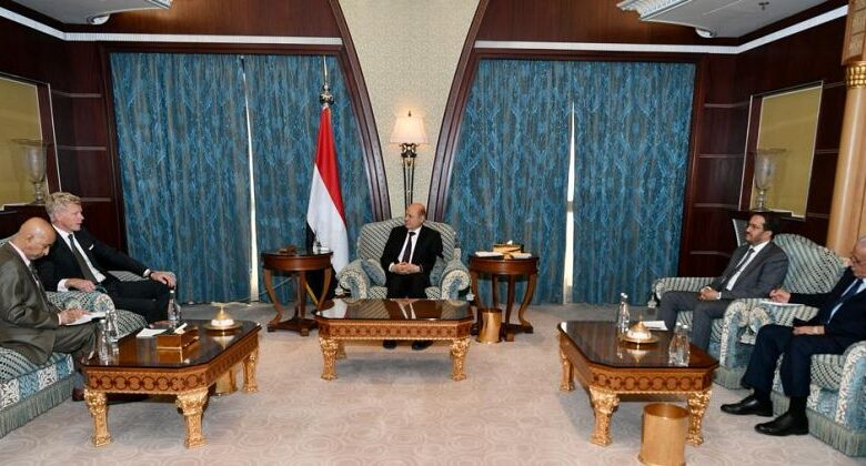رئيس مجلس القيادة الرئاسي يستقبل مبعوث الامم المتحدة لبحث مستجدات السلام في اليمن