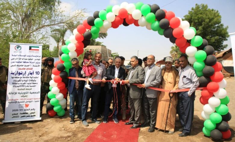افتتحت مؤسسة التواصل للتنمية الإنسانية صباح اليوم السبت مشروع مياه آبار ناصر والذي يشمل حفر آبار ارتوازية استبدالية مع مضخات غاطسة وبناء محطة لتوليد الكهرباء بالطاقة الشمسية بقدرة 610 كيلو وات ( كأكبر محطة لتوليد الطاقة الكهربائية بالطاقة الشمسية)، بتمويل من الجمعية الكويتية للإغاثة ضمن حملة الكويت بجانبكم وبإشراف ورعاية السلطة المحلية للعاصمة عدن و المؤسسة المحلية للمياه والبيئة ويستفيد من المشروع أكثر من 1.446.857 مستفيد من محافظة عدن وأجزاء من محافظة لحج.ويتكون المشروع من :– حفر 10 آبار ارتوازية استبدالية بعمق 320 م– توريد وتركيب محطة توليد كهرباء بالطاقة الشمسية بقدرة 610 كيلو وات– إنشاء شبكة كهربائية جديدة بطول 1.5 كيلو– إعادة تأهيل شبكة الضغط العالي بحقل بئر ناصر بطول 11.6 كيلو– بناء عشر غرف للضخ وتوريد وتركيب خط التجميع أنابيب البولي اثلين بطول 3 كيلو متر مختلفة الأقطار– توريد وتركيب عشر مضخات كهربائية غاطسة بقدرة تتراوح مابين ( 30 – 35 ) كيلو وات وبقدرة انتاجية ( 20 – 25 ) لتر للثانية الواحدة.ويسهم المشروع في تغطية العجز القائم في العاصمة عدن بما نسبته 35٪ وتعزيز قدرات ضخ المياه لمناطق جديدة في محافظة عدن.وفي التدشين قال وزير المياه والبيئة المهندس / توفيق عبدالواحد الشرجبي نفتتح اليوم احد أكبر وأهم المشاريع الكويتية بمحافظة عدن وهو مشروع 10 آبار ارتوازية استبدالية في حقل آبار ناصر والذي يغذي محافظة عدن واجزاء من لحج هذا المشروع متعدد المكونات وبشكل متكامل من حفر وضخ وطاقة شمسية ويسهم في تأمين المياه بشكل كبير بمحافظة عدن، ودولة الكويت عودتنا بشكل دائم على مشاريعها المتميزة والمستدامة .وقال نائب محافظة عدن الأستاذ / بدر معاون أن مشروع مياه آبار ناصر من المشاريع الحيوية والاستراتيجية الذي سيكون له دور بارز في رفع منسوب المياه بمحافظة عدن كل الشكر والعرفان لدولة الكويت أميراً وحكومةً وشعباً.من جانب آخر قال نائب مدير عام الجمعية الكويتية للإغاثة د. عادل باعشن أن دولة الكويت والجمعية الكويتية للإغاثة تحرص دائماً على تنفيذ البرامج والمشاريع النوعية والمستدامة في اليمن ومشروع آبار ناصر هو أحد أبرز المشاريع في قطاع المياه ، المشروع متكامل من حفر الابار وتمديد خطوط الكهرباء وشبكة المياه وغرف ضخ ومضخات وطاقة شمسية هذا المشروع سيكون له اثر كبير في تعزيز مصادر المياه بمحافظة عدن.وفي ذات السياق قال رئيس مؤسسة التواصل للتنمية الإنسانية نفتتح اليوم بمعية وزير المياه والبيئة م. توفيق الشرجبي ونائب محافظة عدن أ. بدر معاون مشروع مياه آبار ناصر والذي جاء لتغطية جانب من العجز المائي للعاصمة عدن، بما نسبته 30% من الاحتياج المائي لعدن ، نتقدم بخالص الشكر والتقدير لدولة الكويت وللجمعية الكويتية للإغاثة على تمويلهم ودعمهم لهذا المشروع النوعي.حضر الافتتاح م. محمد باخبيرة مدير عام مؤسسة المياه والبيئة بعدن والأستاذ جمال بلفقية المنسق العام للجنة العليا للإغاثة وعدد من الشخصيات الاجتماعية وممثلي المنظمات.