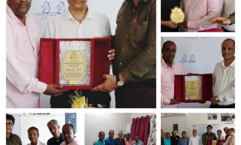 نقابة مطابع الكتاب المدرسي بعدن تكرم الخميسي والعطفي والحمادي والجهمي..