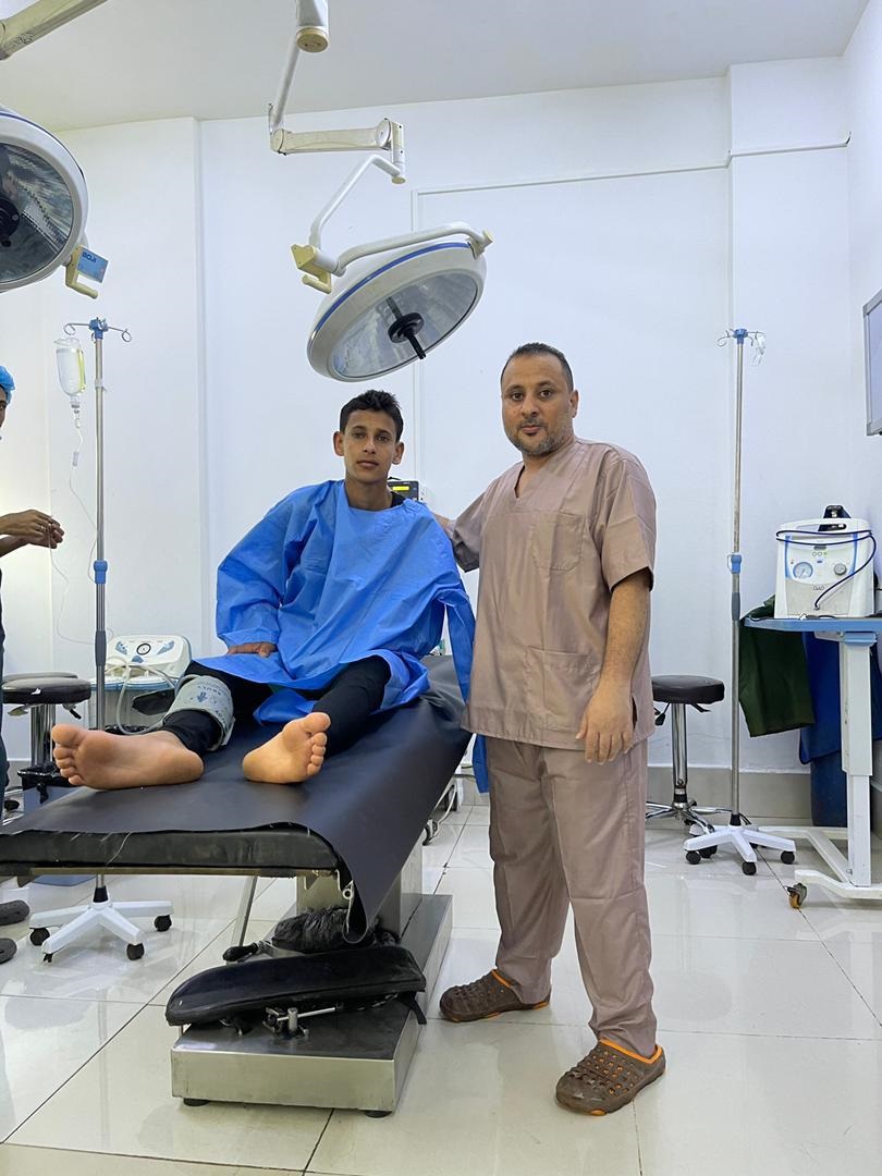 سارع الاستشاري الدكتور عماد الشعيبي باستقبال أحد اللاعبين الناشئينالمصاب (18 عام ) ؛ اثر اصابته اثناء لعب كرة القدم بعد اسعافه ووصولهمباشرة إلى مدينة عدن ، وبعد فحص المصاب وعمل الاشعات والتحاليل اللازمة؛ اتضح اصابته في ساعد اليد اليسرى مع وجود كسر في عظمة الزند وكسر فيعظمة الكعبرة وعظمة اليد، وقطع في وتر اصبع الابهام، وضغط على عصب الزند.حيث نجح استشاري جراحة العظام والتشوهات الخلقية الدكتور عماد بفضل اللهمن إجراء عدة عمليات جراحية تمثلت في اجراء ثلاث عمليات لتثبيت الكسربواسطة ثلاث صفائح وعشرين مسمار، ثم اجراء عملية تسليك العصب وتم تشخيصهذه الاصابة على انها تعد من الاصابات العنيفة والشديدة ومن الكسورالمعقدة . فوجود ثلاثة كسور وضغط في العصب في مكان واحد يدل على قوةالإصابة.تجدر الاشارة الى ان الاستشاري الدكتور عماد الشعيبي يعد أحد الكفاءاتوالخبرات العالية في جراحة العظام و جميع انواع الكسور والمفاصل الصناعيةوالتشوهات الخلقية للأطفال حيث تمكن بفضل الله من اجراء عدة عملياتجراحية متنوعة لحالات كثيرة، ولكسور معقدة في مناطق مختلفة من الجسم ،منها عمليات معقدة جداً لكسور في الحوض ، لأول مرة يتم اجراءها في اليمن، حيث تم تداول الخبر في كثير من المواقع والصحف المحلية والعربية.