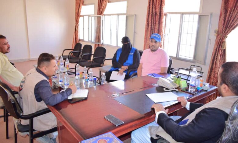 عقد بمديرية العبر بمحافظة حضرموت لقاء ضم مدير عام مديرية العبر الشيخ سالم بن ملهي الصيعري وممثلي المنظمة الدولية للهجره (IOM)لبحث تنفيذ نشاط تقييمي لمناطق النازحين  في المديرية، بناءاً على توجيهات محافظ محافظة حضرموت الاستاذ مبخوت مبارك بن ماضي بتسهيل عمل فريق التقييم التابع للمنظمة الدولية للهجرة بخصوص تتبع النزوح.