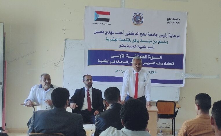 الجدير بالذكر أن الدورة الطرائقية الأولى لأعضاء الهيئة التدريس والتدريس المساعدة بكلية التربية يافع ستستمر لمدة 10 أيام سيتلقى من خلالها 35 مشارك ومشاركة عدد من المحاور الأساسية في تأهيل الكادر الأكاديمي بالكلية