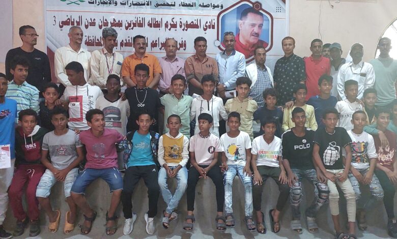 تقديرا لانجازاتهم في مهرجان عدن الرياضي الثالث الذي اقامته دائرة الشباب والرياضة في المجلس الانتقالي الجنوبي احتفلت ادارة نادي المنصورة بعدن صباح ( السبت) بابطال الالعاب وكرمتهم بمبالغ مالية بحضور الاخوة/ مامور المنصورة رئيس النادي/ احمد الداؤودي وخالد عفارة مدير مكتب الشباب والرياضة بمديرية المنصورة وحسين عوض رئيس الاتحاد العام لكرة الطائرة وعلي صالح احمد امين عام نادي المنصورة وسامي الحريبي رئيس اتحاد عدن للكرة الطائرة وعدد من المسئولين..