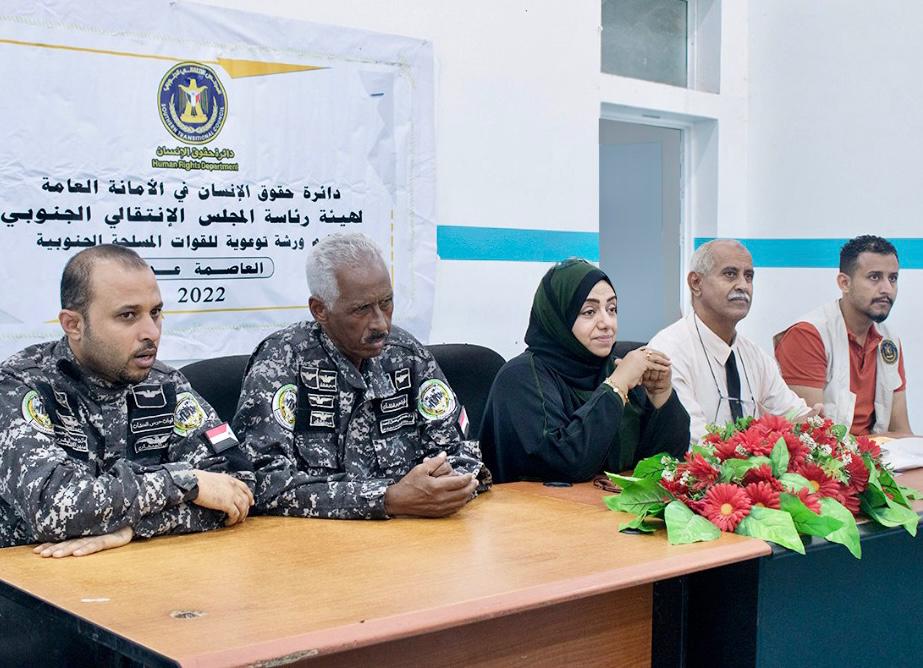 نظمت دائرة حقوق الانسان في الأمانة العامة لهيئة رئاسة المجلس الانتقالي الجنوبي برئاسة المحامية ذكرى معتوق رئيس الدائرة، اليوم الأحد، ندوة توعوية حقوقية للدفعة الأولى من الشرطة النسائية من قوات حرس المنشآت في العاصمة عدن وذلك ضمن البرنامج التوعوي الذي تنفذه الدائرة لأفراد قوات المسلحة الجنوبية.