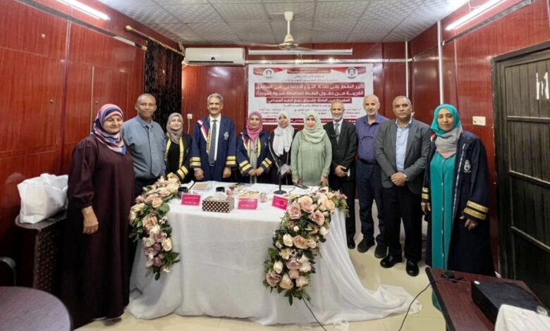نالت الباحثة/ أشراق أحمد ربيع السباعي صباح اليوم في تخصص قسم الدراسات النسوية بمركز المرأة للبحوث والتدريب بجامعة عدن درجة الماجستير عن أطروحتها الموسومة بعنوان(تأثير تسرب النفط على صحة النوع الإجتماعي في المناطق القريبة من حقول النفط – محافظة شبوة نموذجاً)