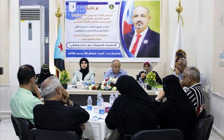 نظمت اللجنة التحضيرية للمؤتمر الأول للصحفيين والإعلاميين الجنوبيين، اليوم الأربعاء، في العاصمة المؤقتة عدن حلقة نقاشية بعنوان “الإعلاميات الجنوبيات.. دور ريادي ونضالي”.