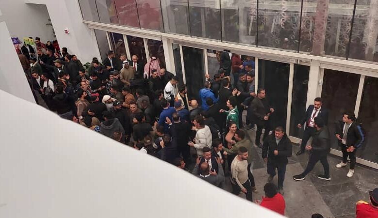*وتدافع قوي امام البوابات حتى الخاصة بالوفود والضيوف والاعلاميين بشكل لا يصدق* ..