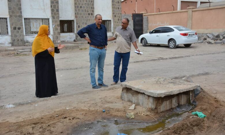 باخبيرة يوجه بمعالجة أوضاع الصرف الصحي جوار جمعية التوحد بخورمكسر في عدن