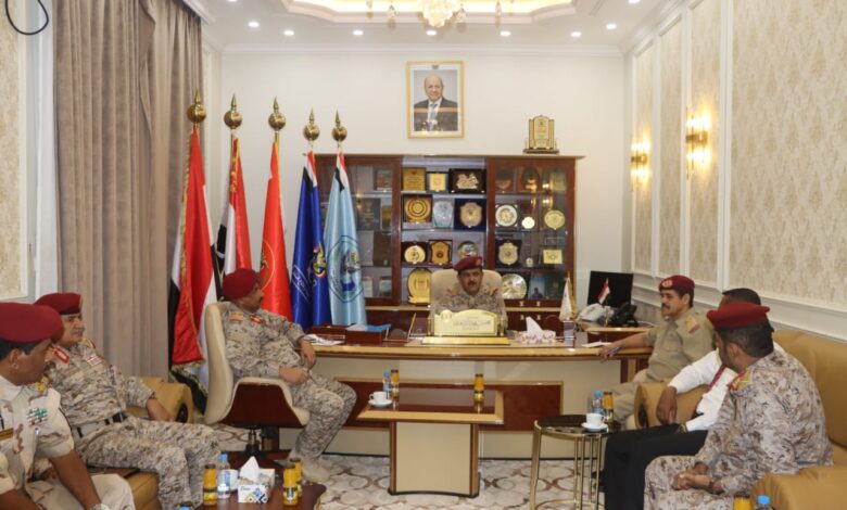 وزير الدفاع يلتقي بقائد المنطقة العسكرية الثانية وقائد محور الغيضة ويشيد بضبط شحنات اسلحة كانت في طريقها لميليشيات الحوثي