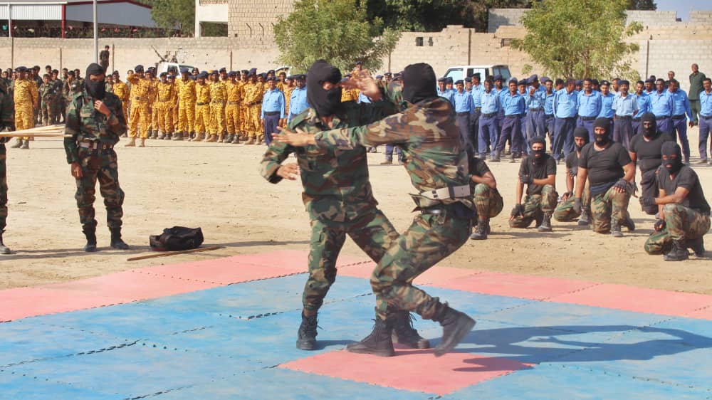 وفي حفل تدشين العام التدريبي ألقى مدير أمن محافظة العميد علي ناصر بو زيد (أبو مشعل الكازمي) كلمة رحب في مستلها بالحاضرين جميعا، وأثنى على ثبات وجهود وتضحيات جميع منتسبي الأمن بالمحافظة.