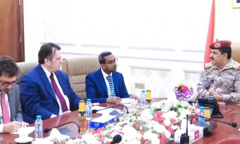 ناقش وزير الدفاع الفريق ركن محسن محمد الداعري، اليوم، في العاصمة عدن، مع وفد الامم المتحدة برئاسة مندوب الامم المتحدة المقيم ومنسق الشؤون الإنسانية ديفيد غريسلي، جملة من القضايا ذات الإهتمام المشترك.