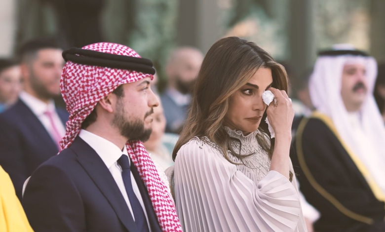 شاهد| بكاء الملكة رانيا في حفل زفاف الأميرة إيمان (فيديو)