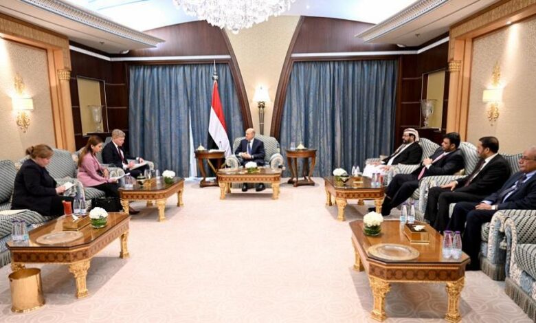 وخلال اللقاء استمع رئيس مجلس القيادة الرئاسي، واعضاء المجلس، الى احاطة من المبعوث الاممي الخاص حول نتائج لقاءاته الاخيرة على الصعيدين المحلي، والاقليمي، وفرص البناء عليها لدفع المليشيات الحوثية الارهابية على التعاطي الجاد مع المبادرات، والمساعي الاقليمية والدولية لاطلاق عملية سياسية شاملة تقودها الامم المتحدة، وبما يلبي تطلعات جميع اليمنيين في استعادة مؤسسات الدولة وتحقيق الامن والاستقرار.