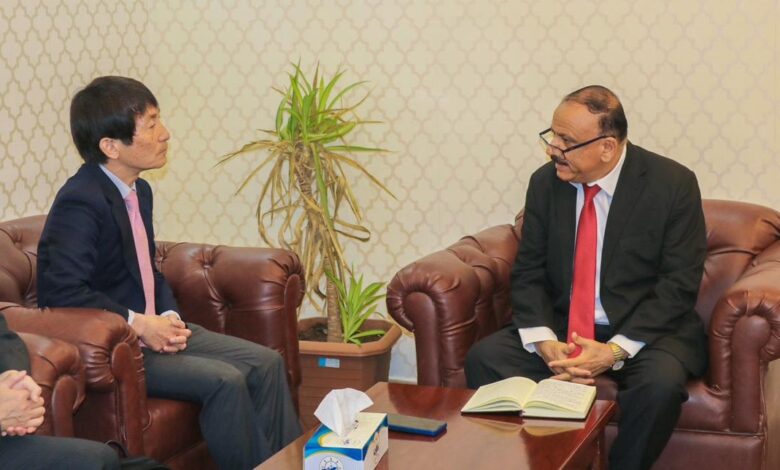 بحث معالي وزير النقل الدكتور عبدالسلام صالح حُميد، اليوم، بديوان عام الوزارة بالعاصمة عدن، مع القائم بأعمال السفير الياباني السيد كازوهيرو هيجاشي،السبل الكفيلة لرفع مستوى التعاون ودعم الحكومة اليابانية لقطاعات النقل وخاصة موانئ المناطق المحررة في اليمن.