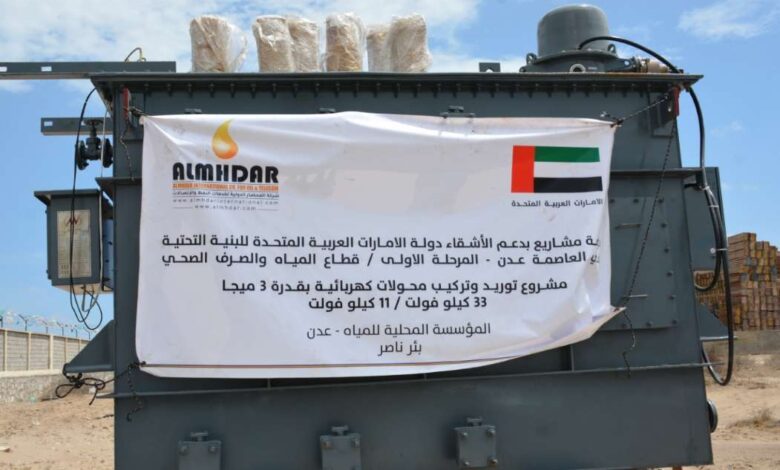 مقدمة من دولة الإمارات:مؤسسة المياه بعدن تتسلم محولات كهربائية