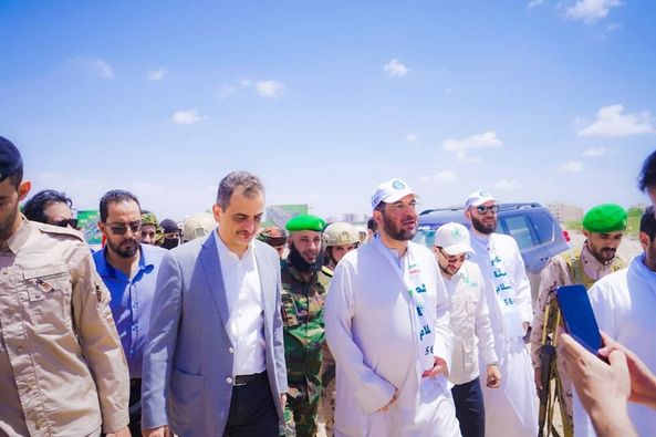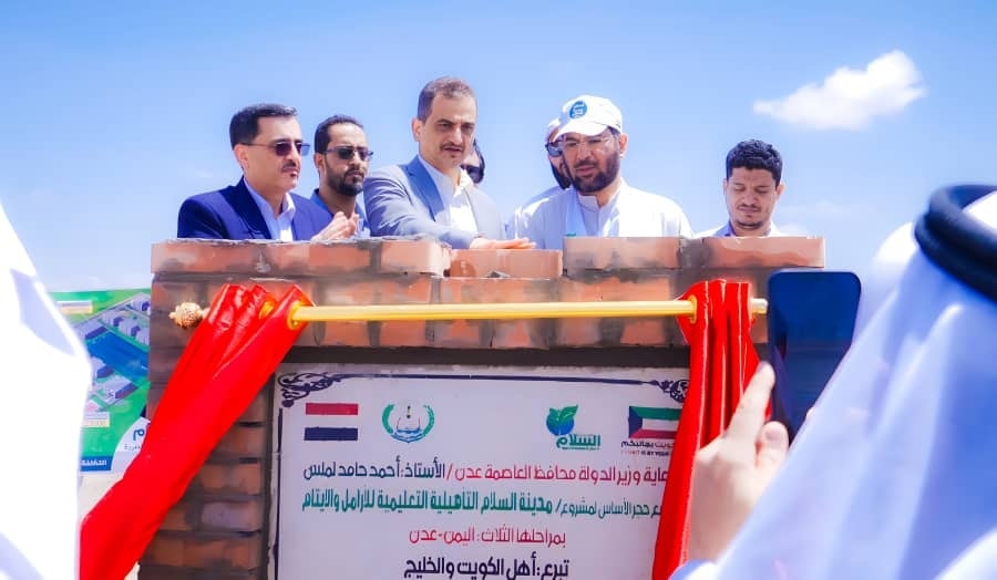 دشن معالي وزير الدولة محافظ العاصمة عدن الاستاذ احمد حامد لملس ومعه وفد من دولة الكويت الشقيقة والدكتور علي منصور بن سفاع سفير اليمن لدى الكويت والدكتور نبيل العون رئيس جمعية السلام للاعمال الانسانية والخيرية الكويتية حجر الأساس لمشروع المدينة السكنية في مديرية البريقا المقدمة من الاشقاء في دولة الكويت الشقيقة