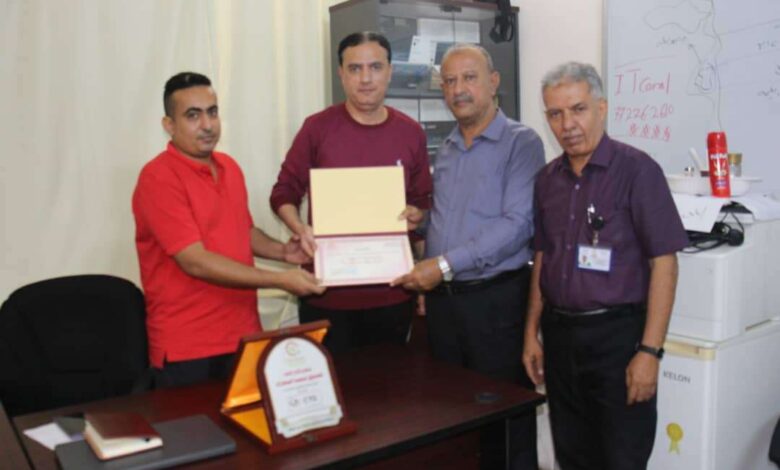 حضر التكريم مدير العلاقات العامه بالصندوق المهندس عادل نصر العريقي ومدير مكتب الإعلام بالصندوق