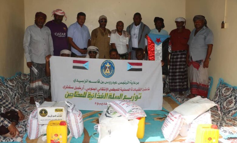 إنتقالي سقطرى يدشن توزيع السلال الغذائية المقدمة من الرئيس الزبيدي للأسر الأكثر احتياجا بمديريتي حديبوة وقلنسية