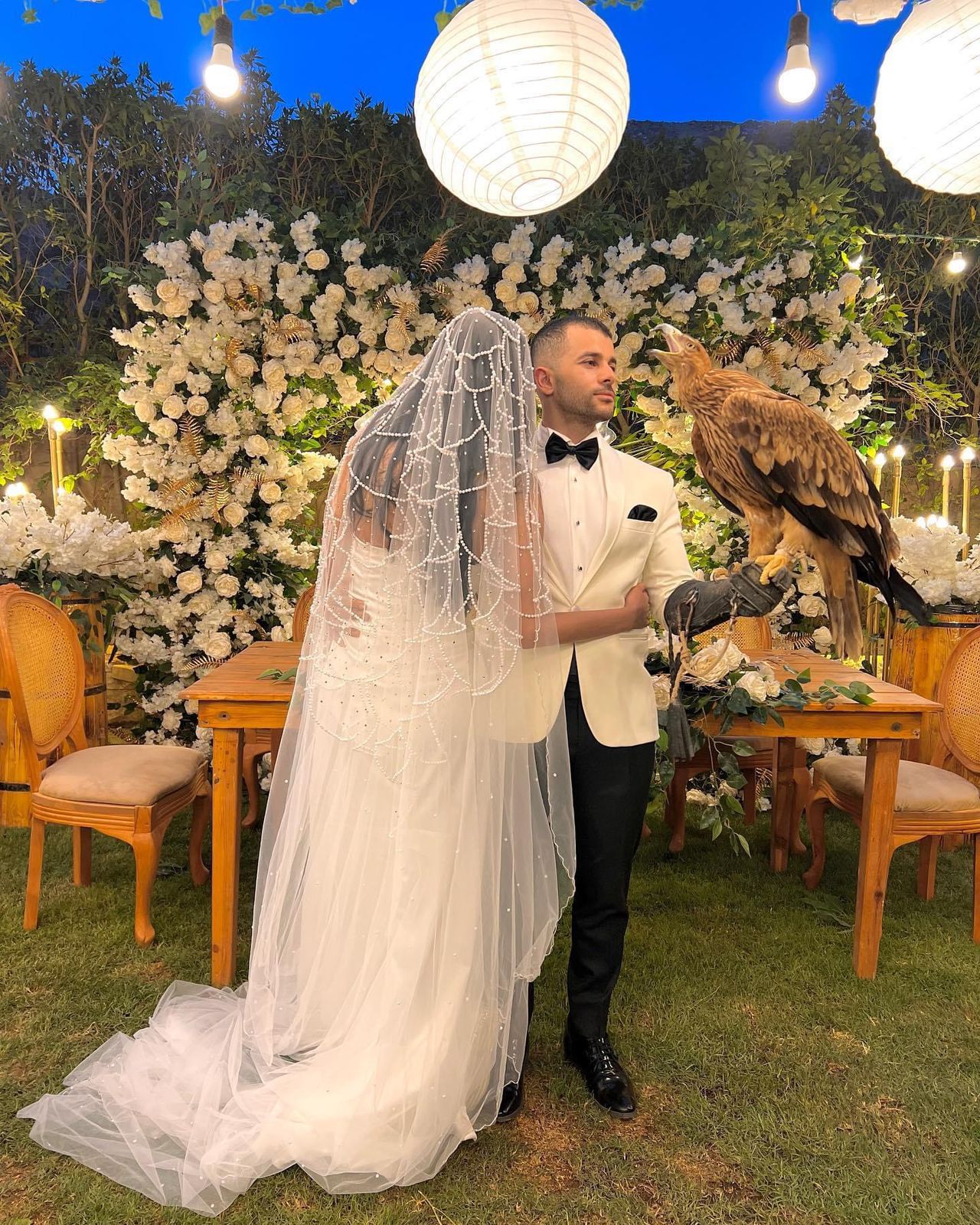 رامز أمير يحمل أنثى نسر من حفل زفافه