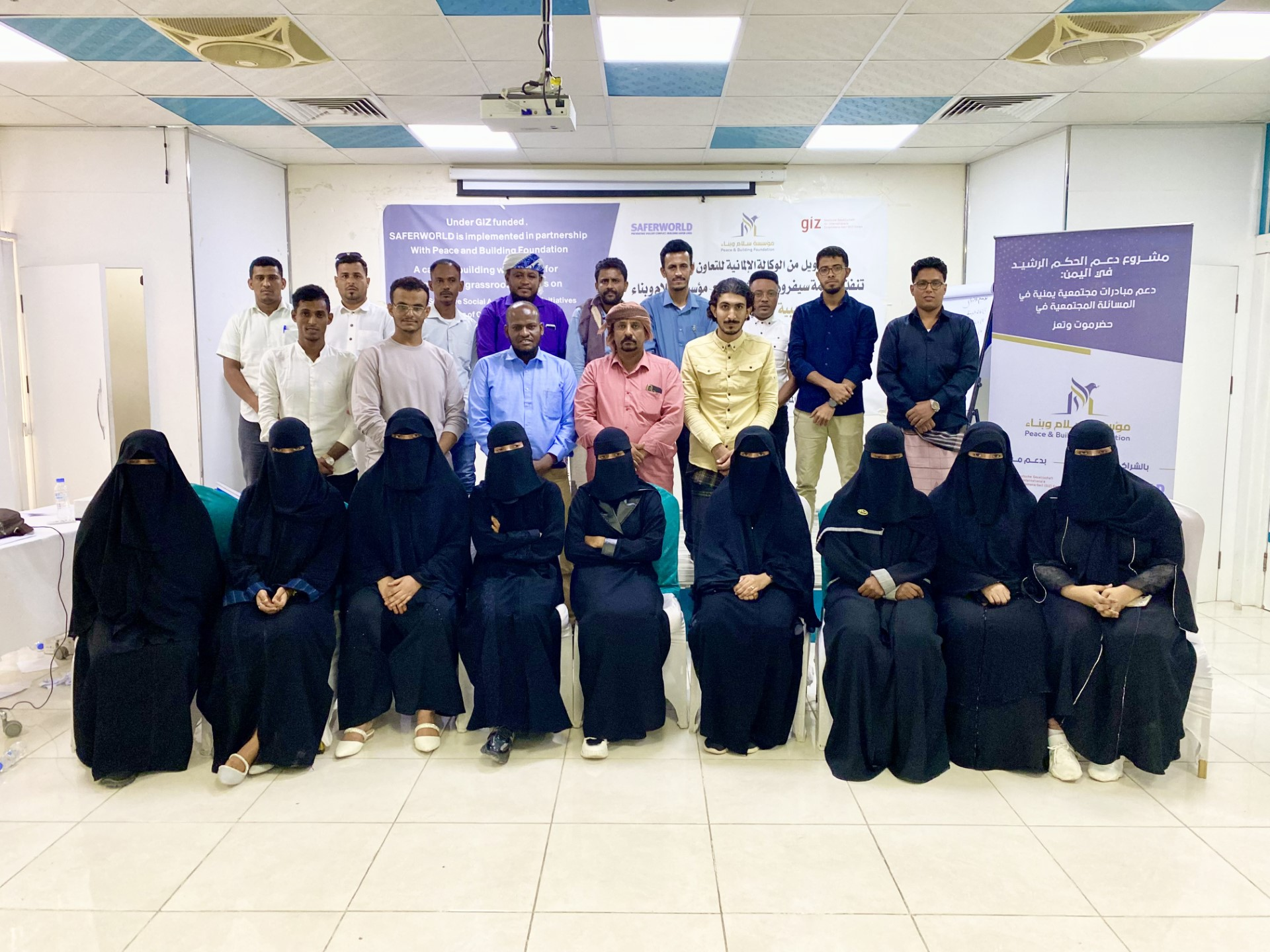 اختتم وكيل محافظة حضرموت الأستاذ حسن الجيلاني، اليوم بمدينة المكلا، الورشة التدريبية لبناء قدرات المجموعات المحلية في مبادرات المساءلة المجتمعية الحساسة للنزاعات (نهج تنمية القدرات والتحليل القائم على النوع الاجتماعي / الشباب)، الذي تنفذها منظمة سيفرورلد بالشراكة مع مؤسسة سلام وبناء، بتمويل من الوكالة الألمانية للتعاون الدولي GIZ.