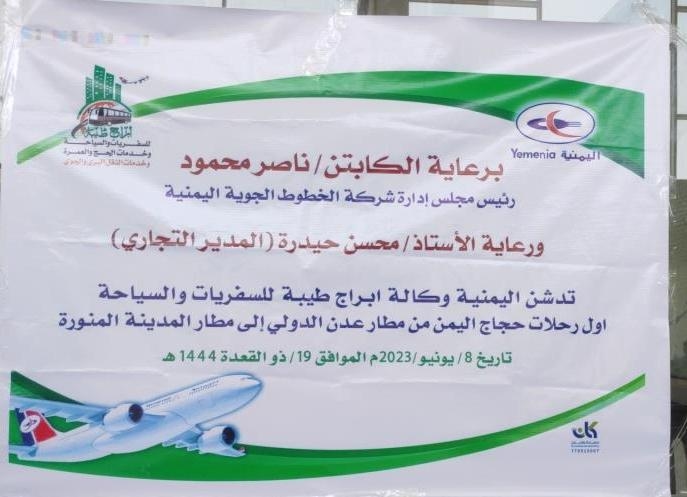 من.جانبه اوضح الكابتن / ناصر محمد محمود رئيس مجلس ادارة شركة الخطوط الجوية اليمنية ان الخطوط الجوية اليمنية قد رتبت مواعيد الرحلات لنقل مايقارب ستتة الاف حج يمني الى الاراضي المقدسة ابتداء بتدشين.اول رحلة من.مطار عدن الى المدينة المنورة وتشمل اربع رحلات للمدينة المنورة ومن 8- حتى 12 يونيو الجاري ،و44 رحلة الى.جدة.من عدن والريان سيئون خلال الفترة من 3- 22 يونيو الجاري.