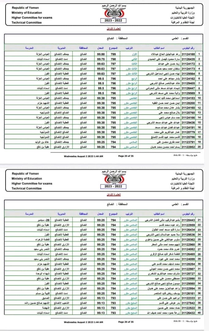 “عدن اوبزيرفر”ينفرد بنشر اسماء العشرة الأوائل في اختبارات الثانوية العامة بمحافظة الضالع