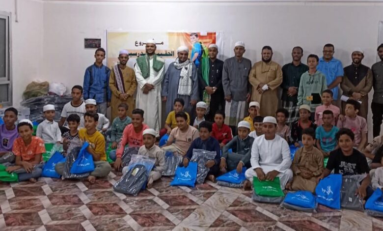 منتدى الصفوة بالعاصمة عدن يدشن مشروع توزيع الحقيبة المدرسية للأيتام.